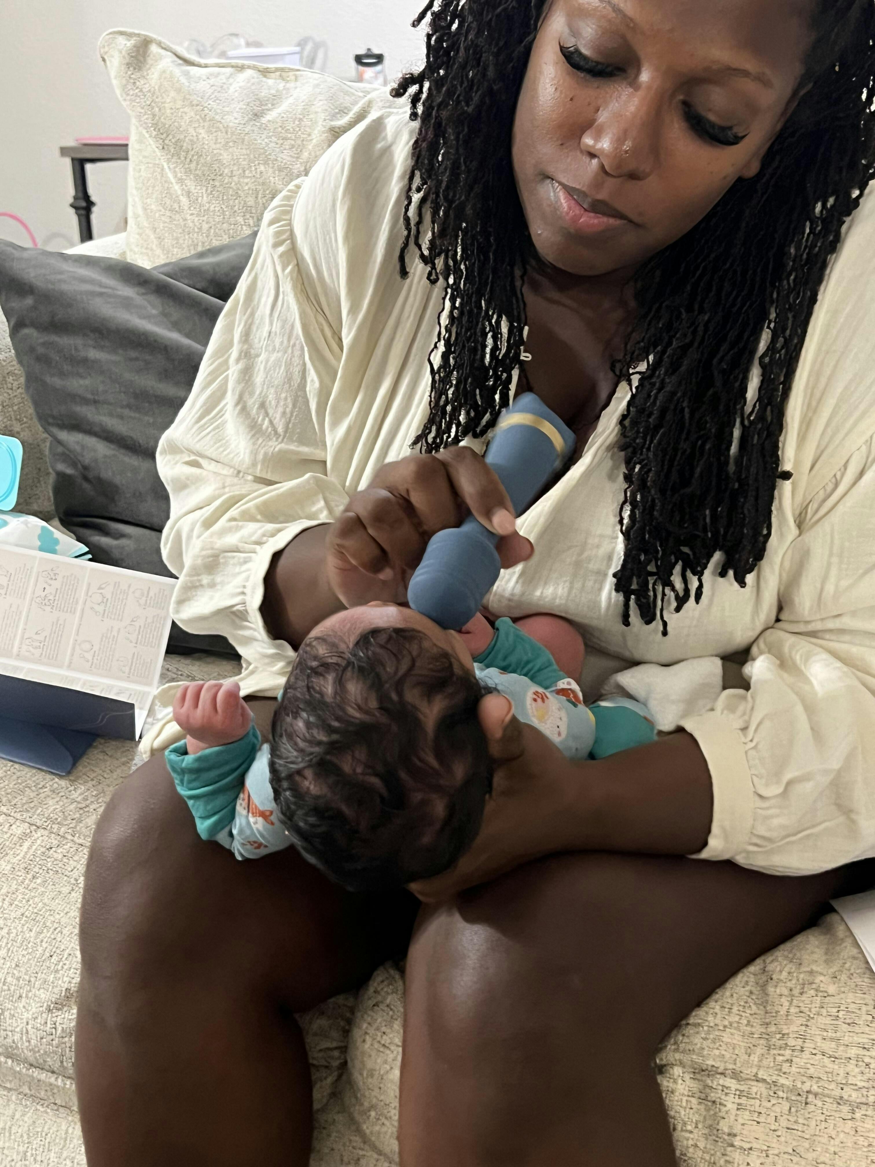 "Our family has fallen in love with Kahlmi. It's really a family activity for us since my husband gets home later in the day and now he gets to feel more involved. I love that it brings us closer as a family. And it really helps my son Amari when he's feeling gassy or teething. We use it all the time."